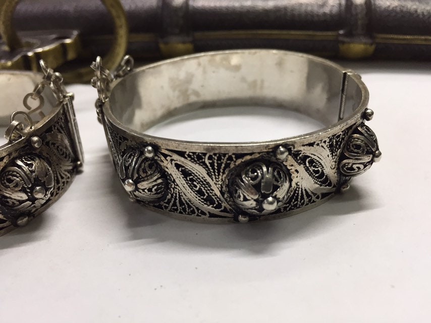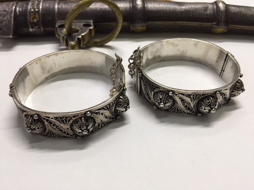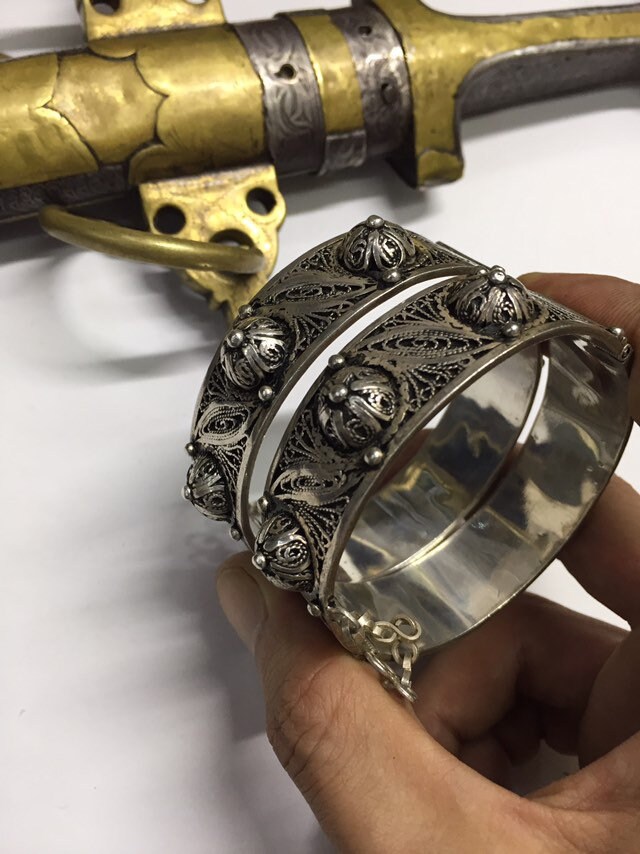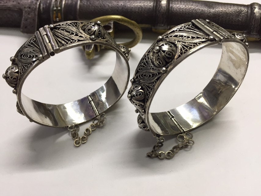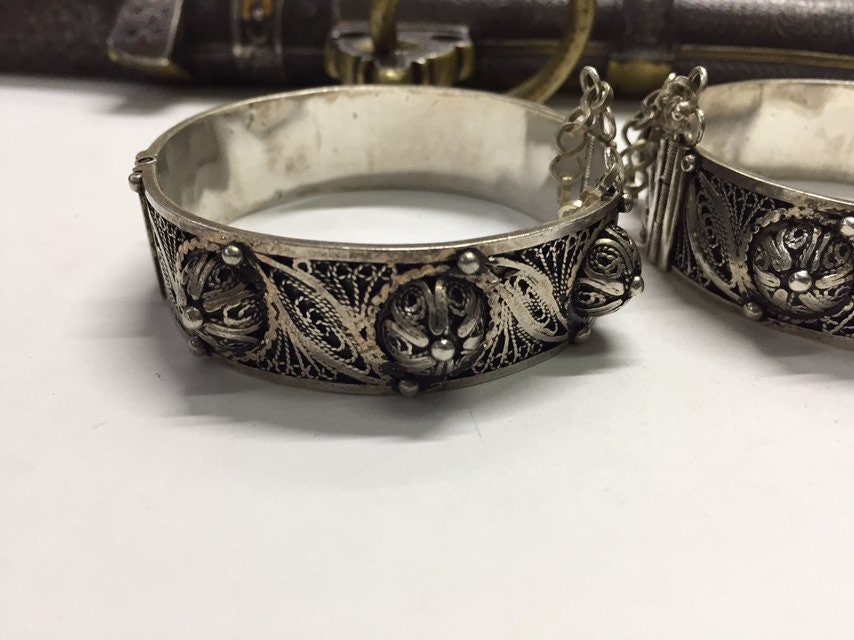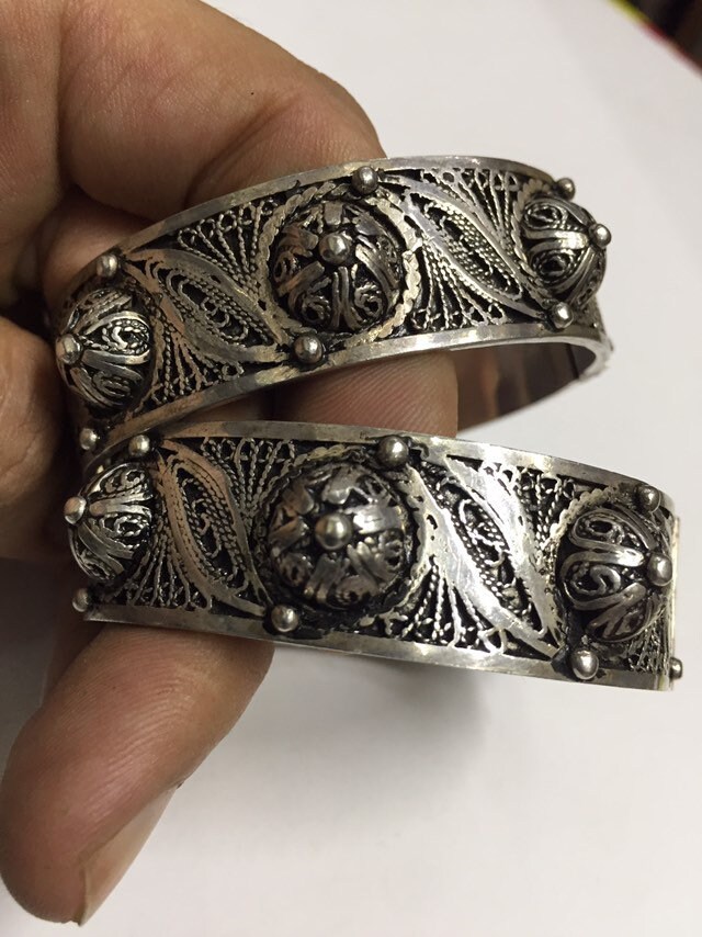 Pair of Vintage berber silver bracelet region Created by berber silversmith region Tiznit very beautiful handmade work.