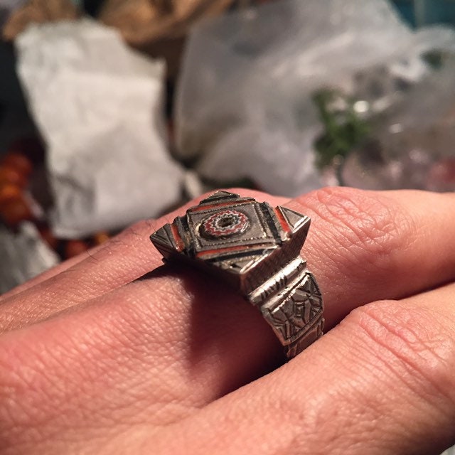 Antique berber Silver ring region Guilmim,Antique Chevron bead 7 layers.