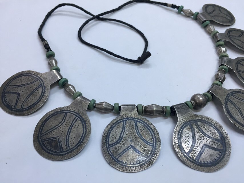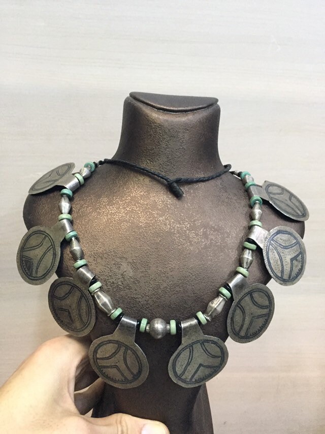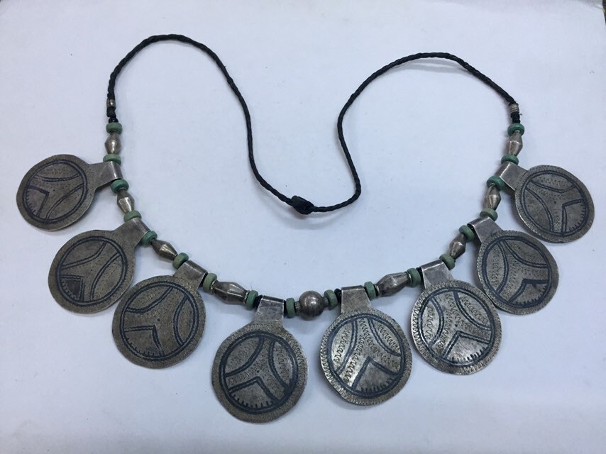 Berber necklace composed antique berber niello pendant,antique silver bead.