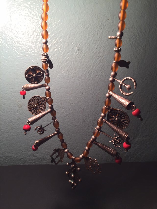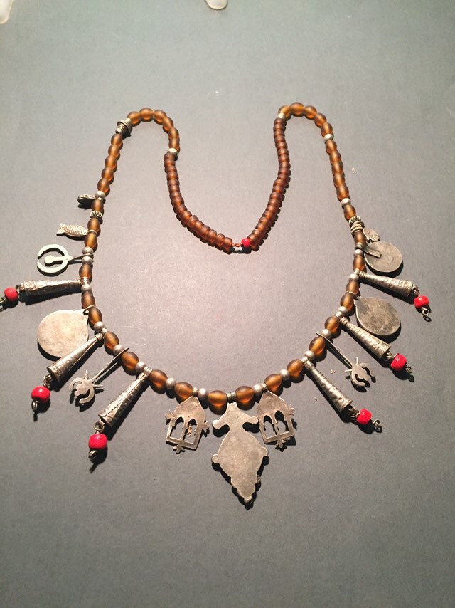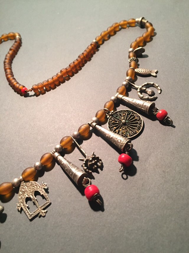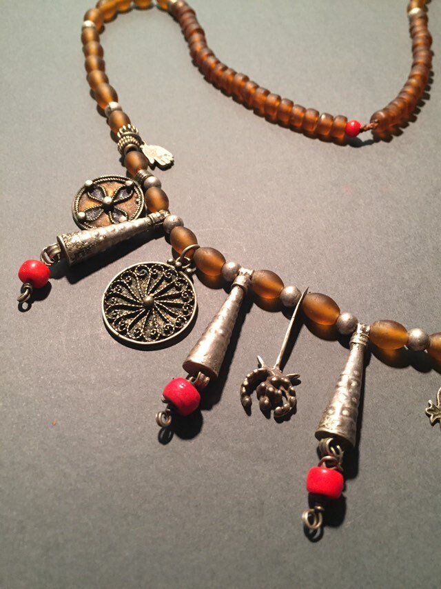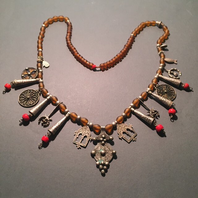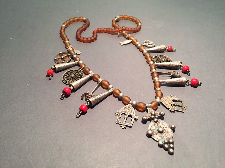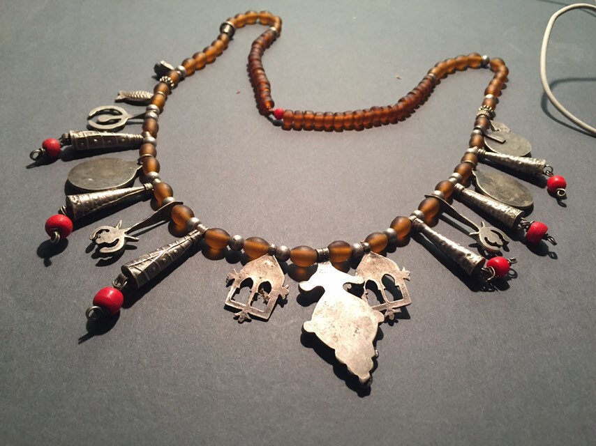 Necklace composed antique berber silver pendant,yellow glass bead.