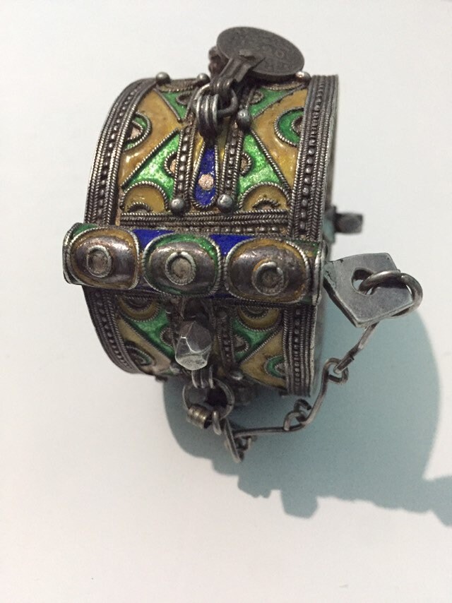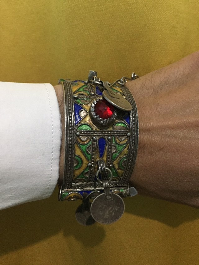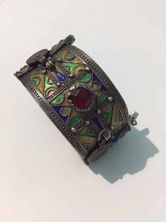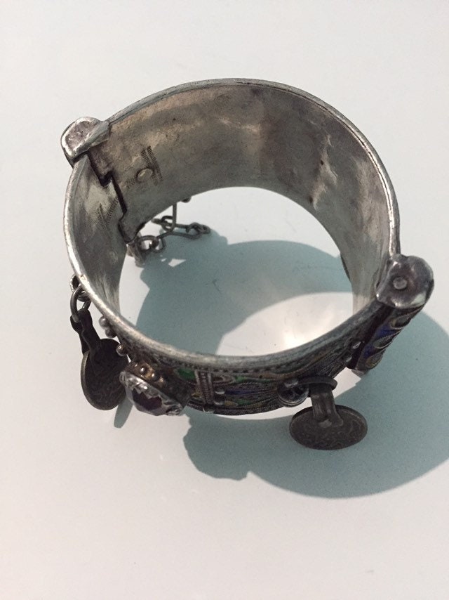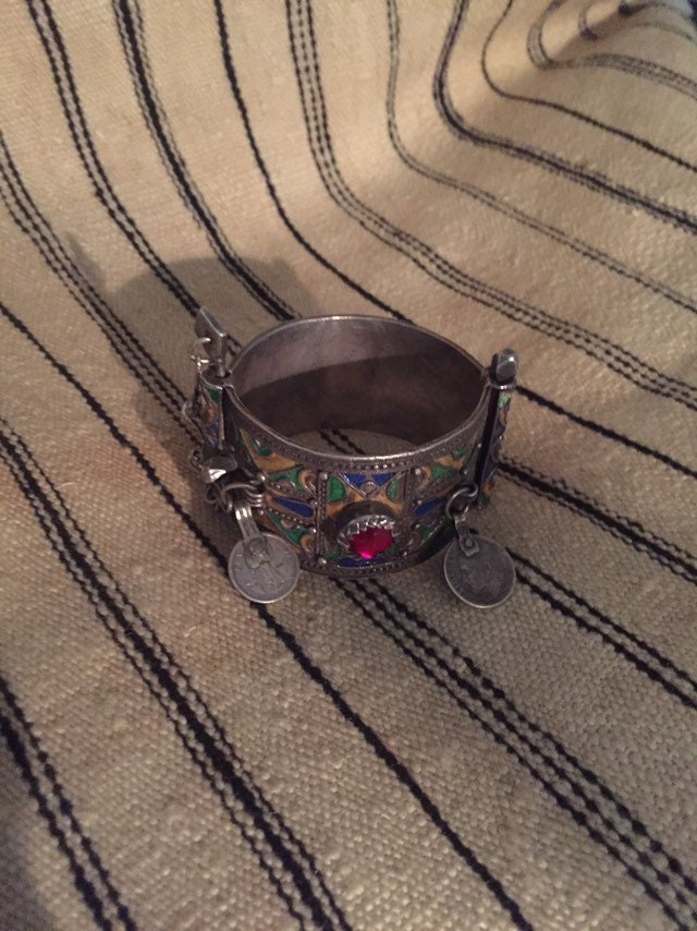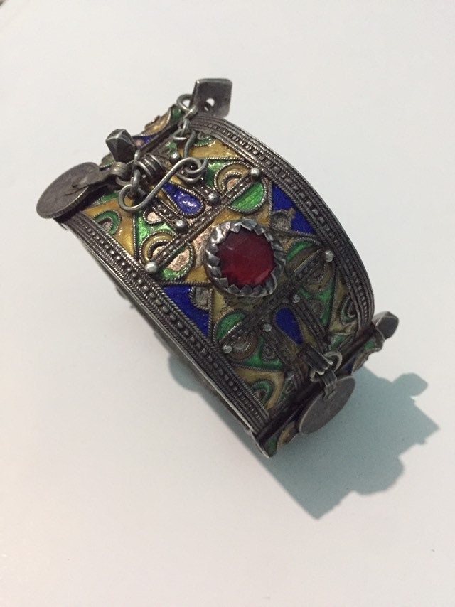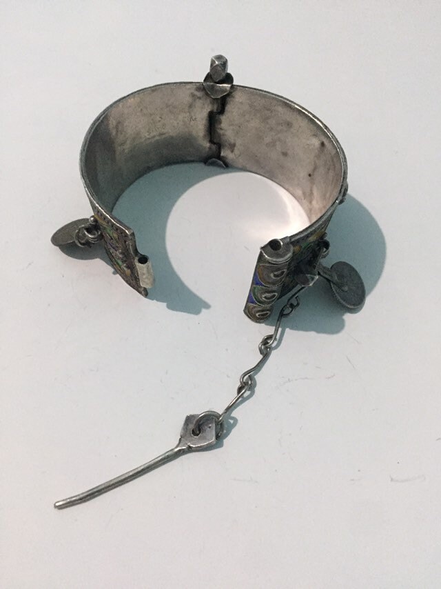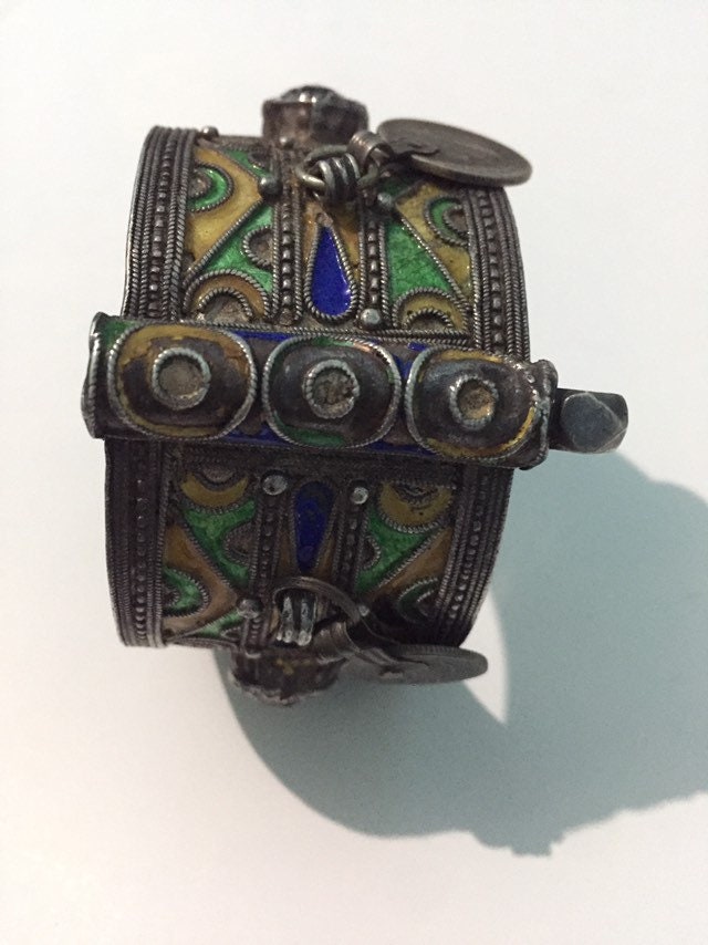 Antique berber silver enamel bracelet region Idawslal southern of Morocco.