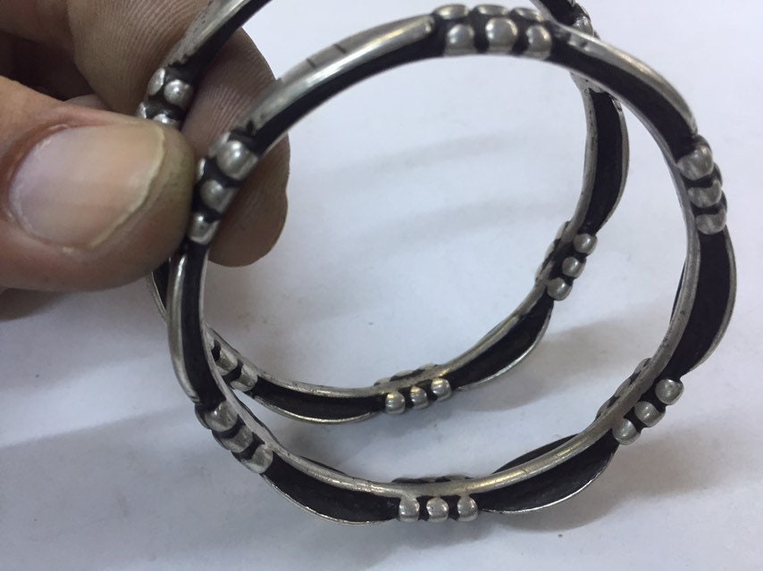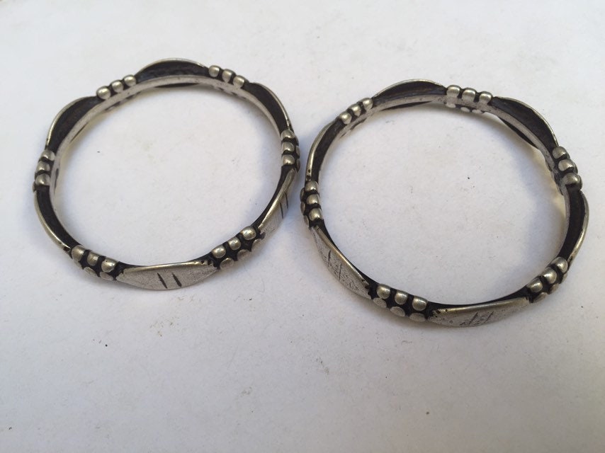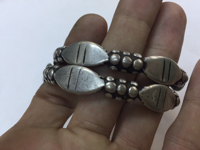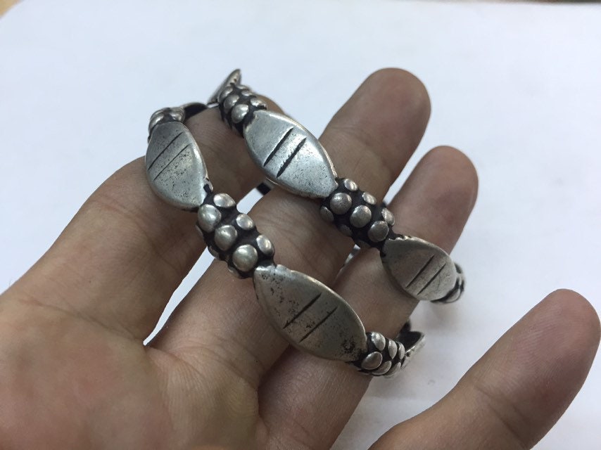 Antique Handmade Berber silver bracelet region Guilmim,high grade of silver,original pair.