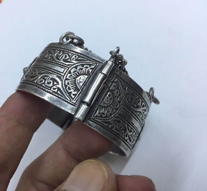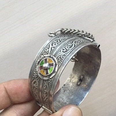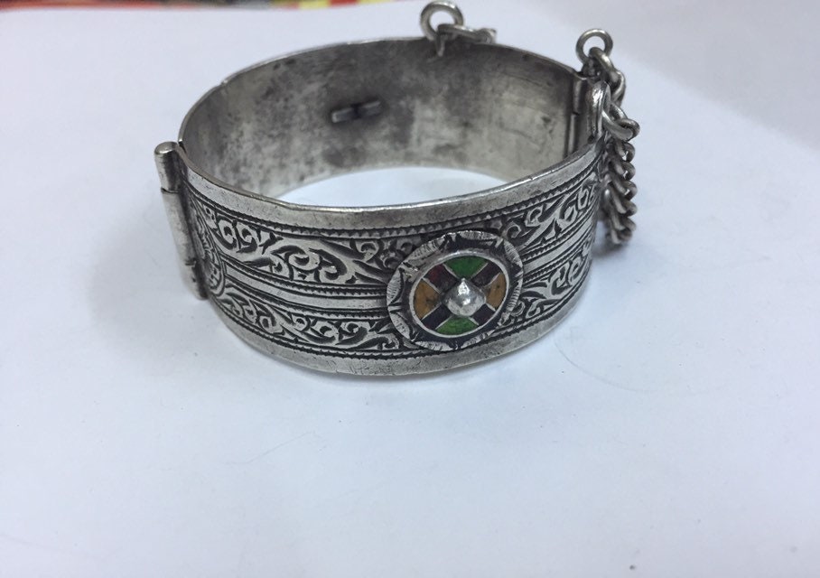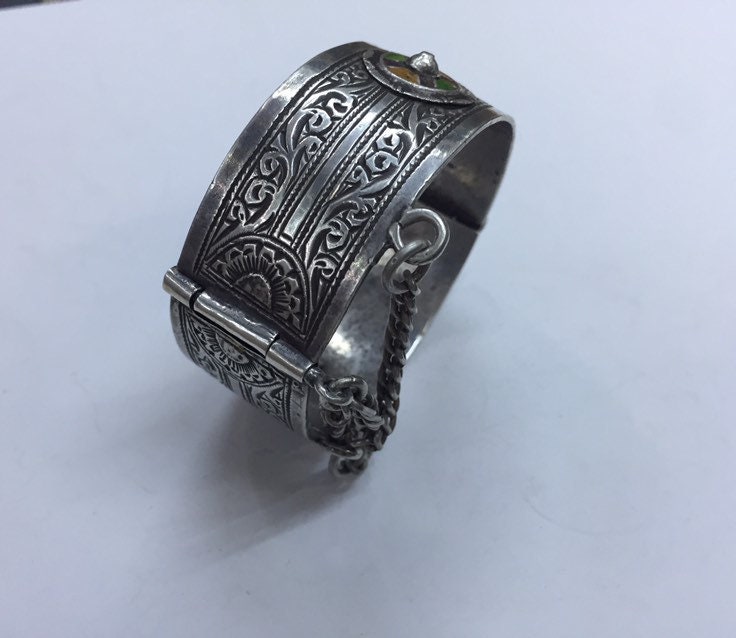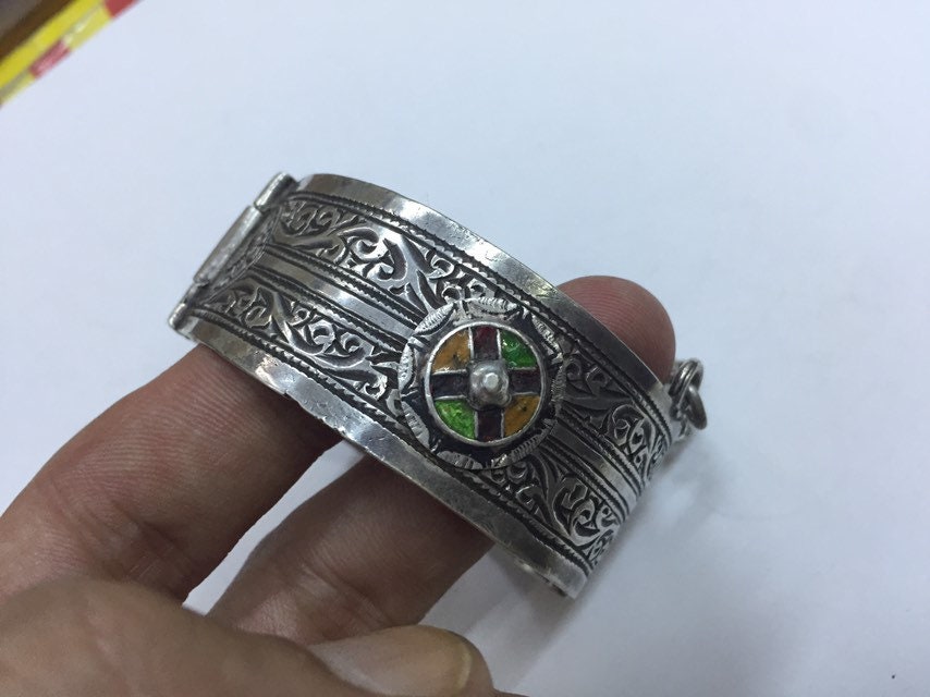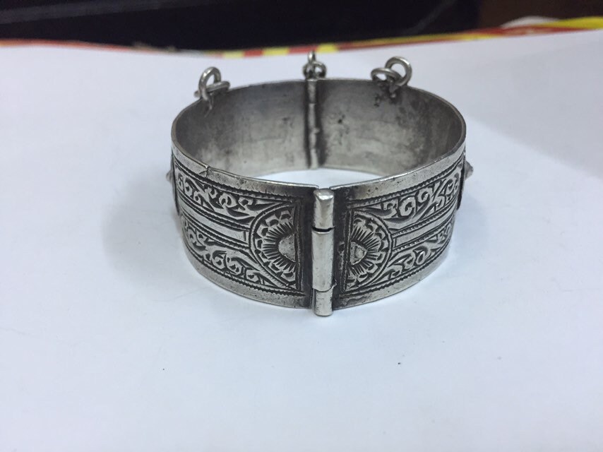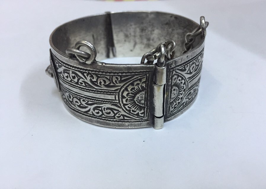 Antique Moroccan silver bracelet region Essaouira handmade by talented silversmith,handmade engraving.