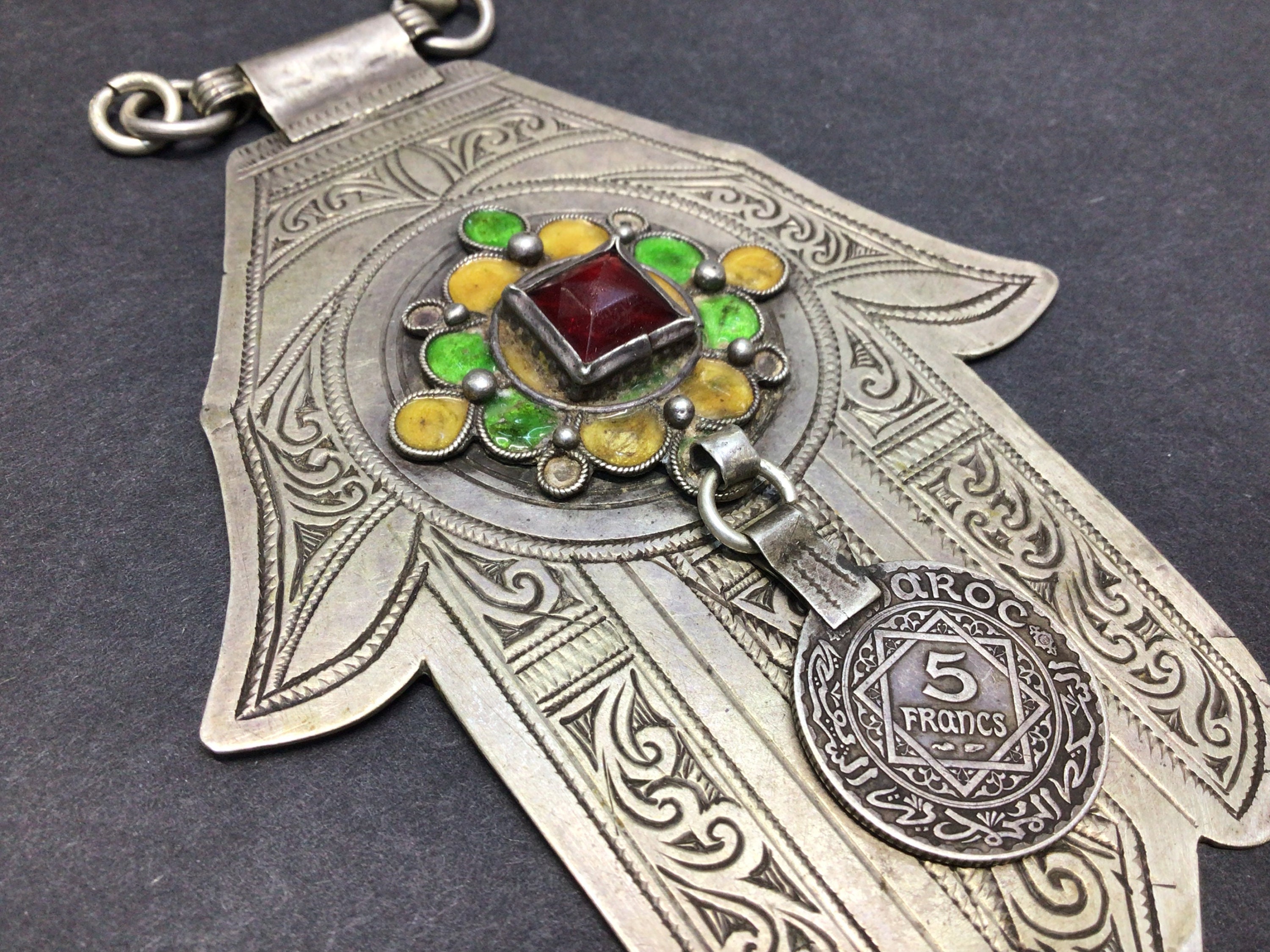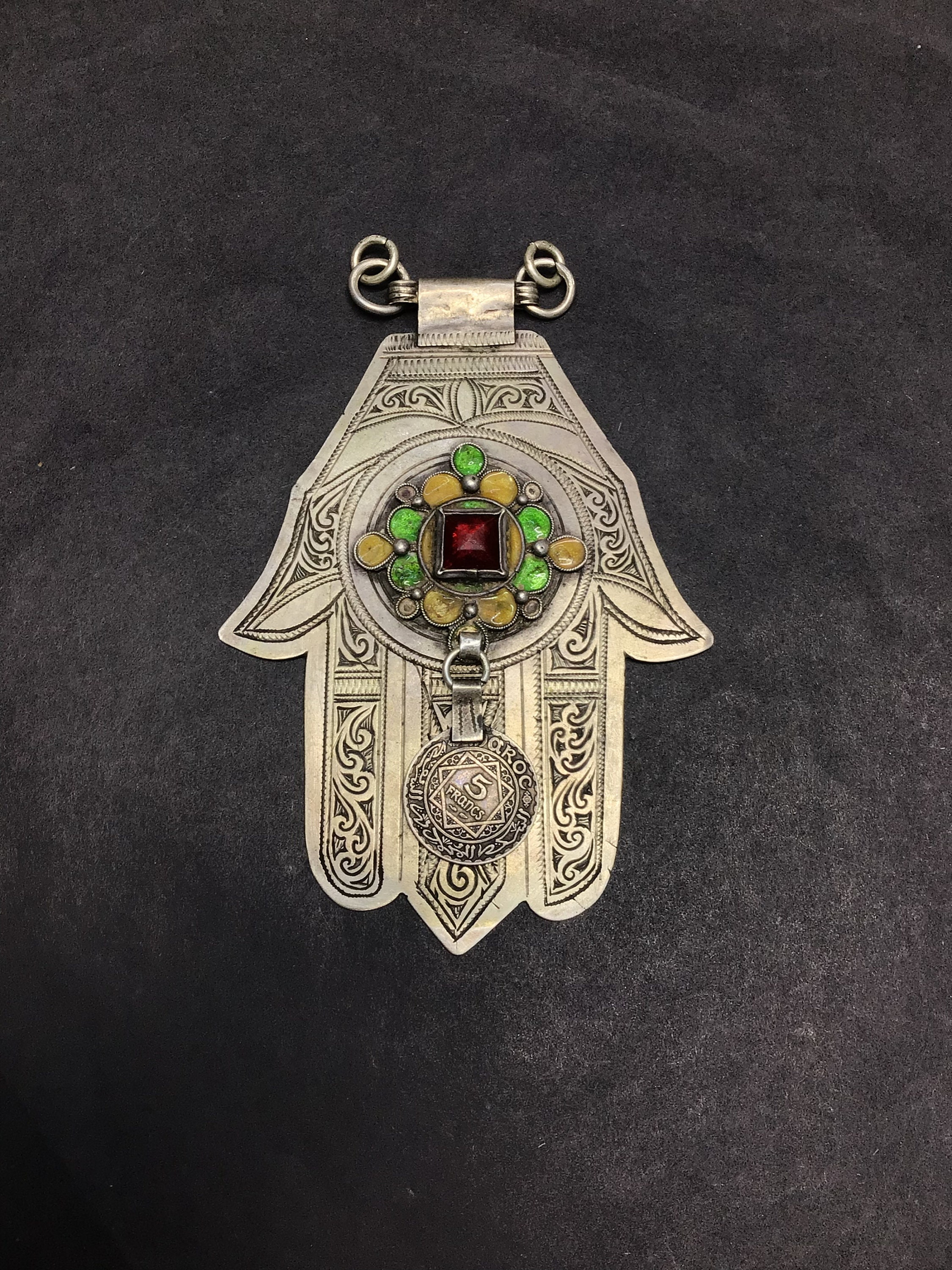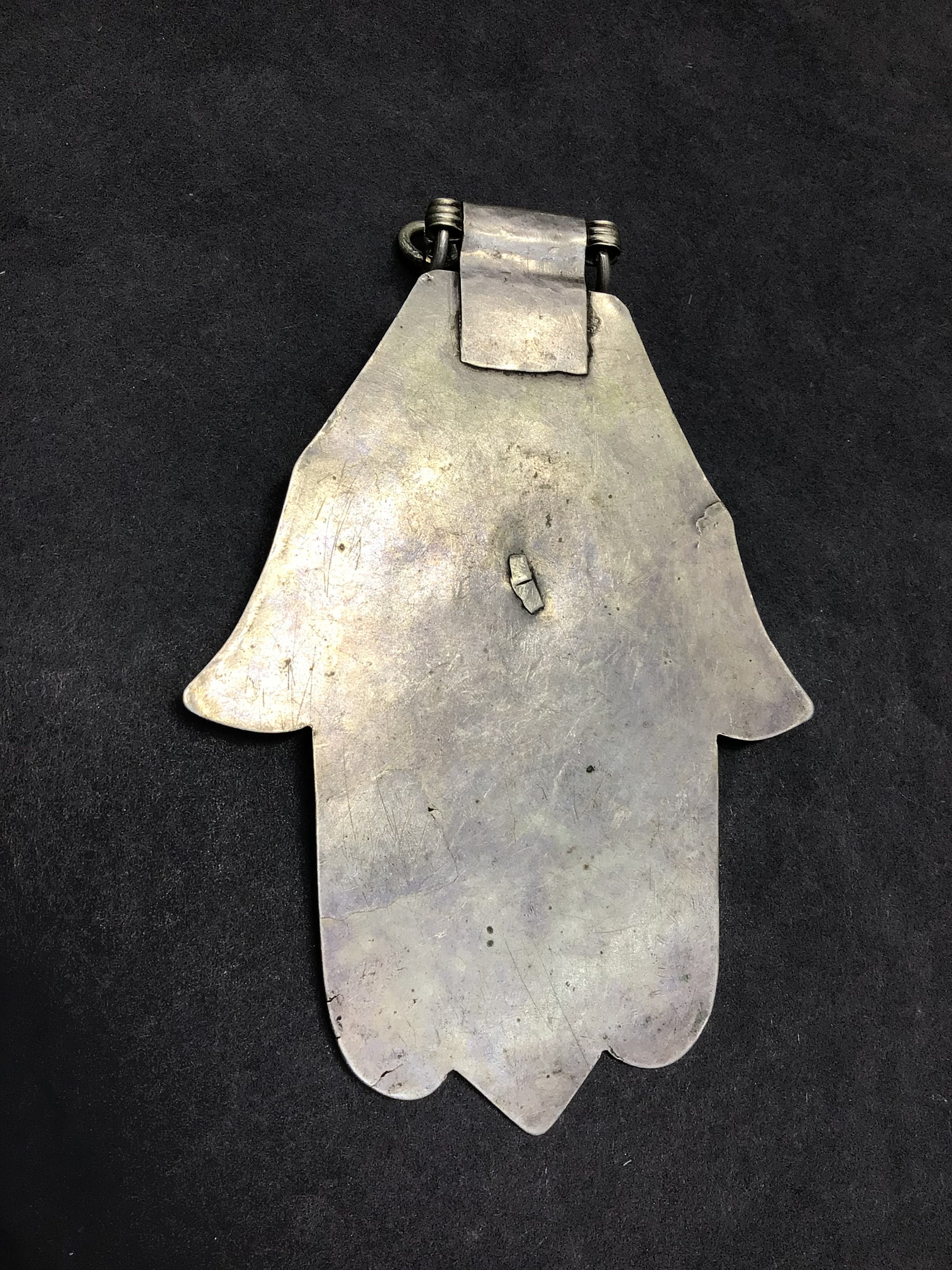 Vintage Berber silver Khamsa, handmade by Berber silversmith region Massa southern of Morocco.