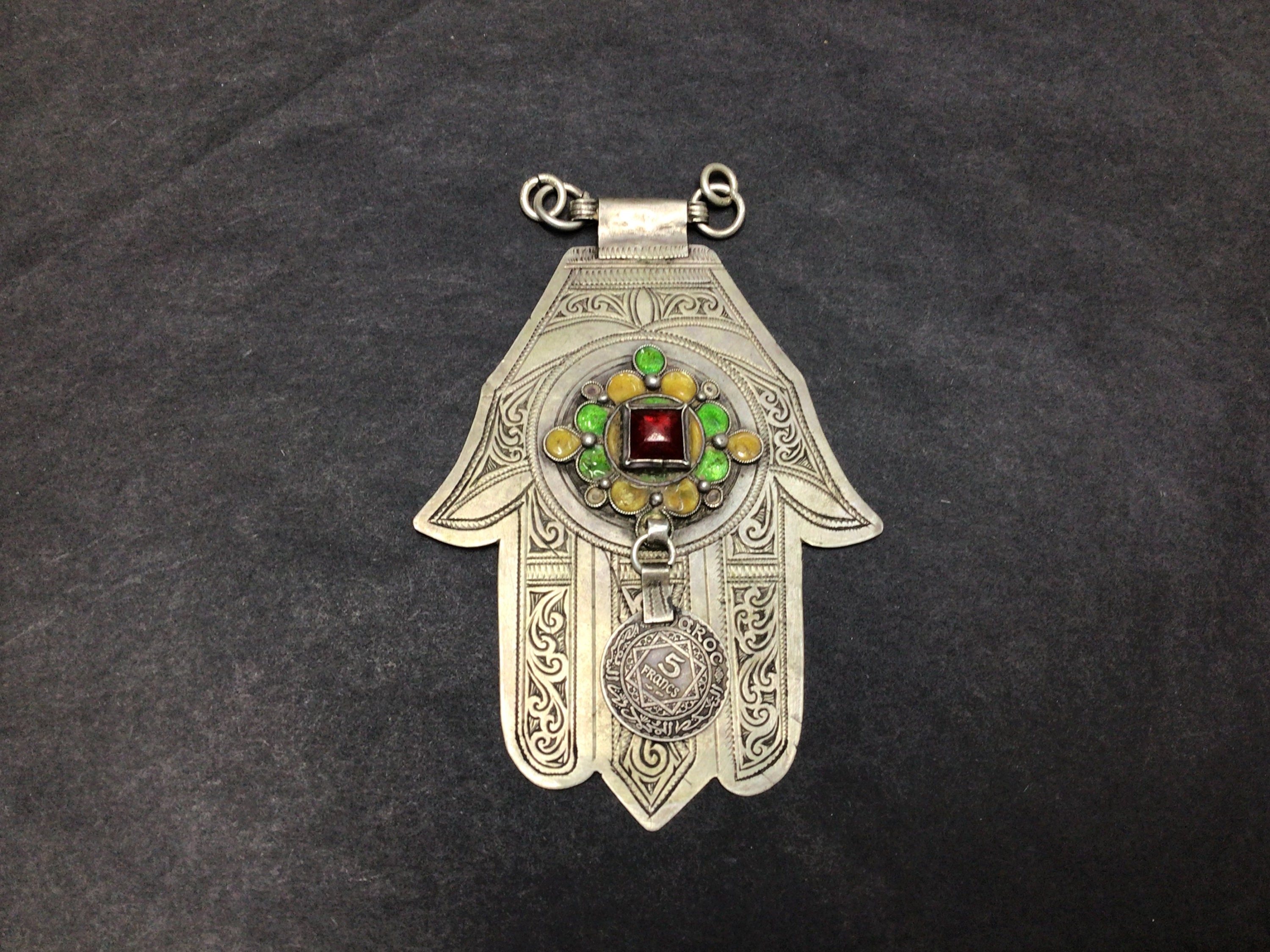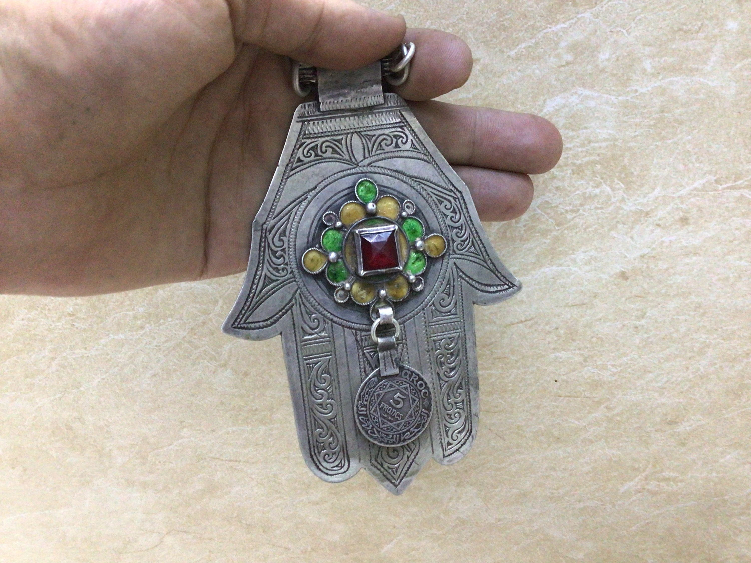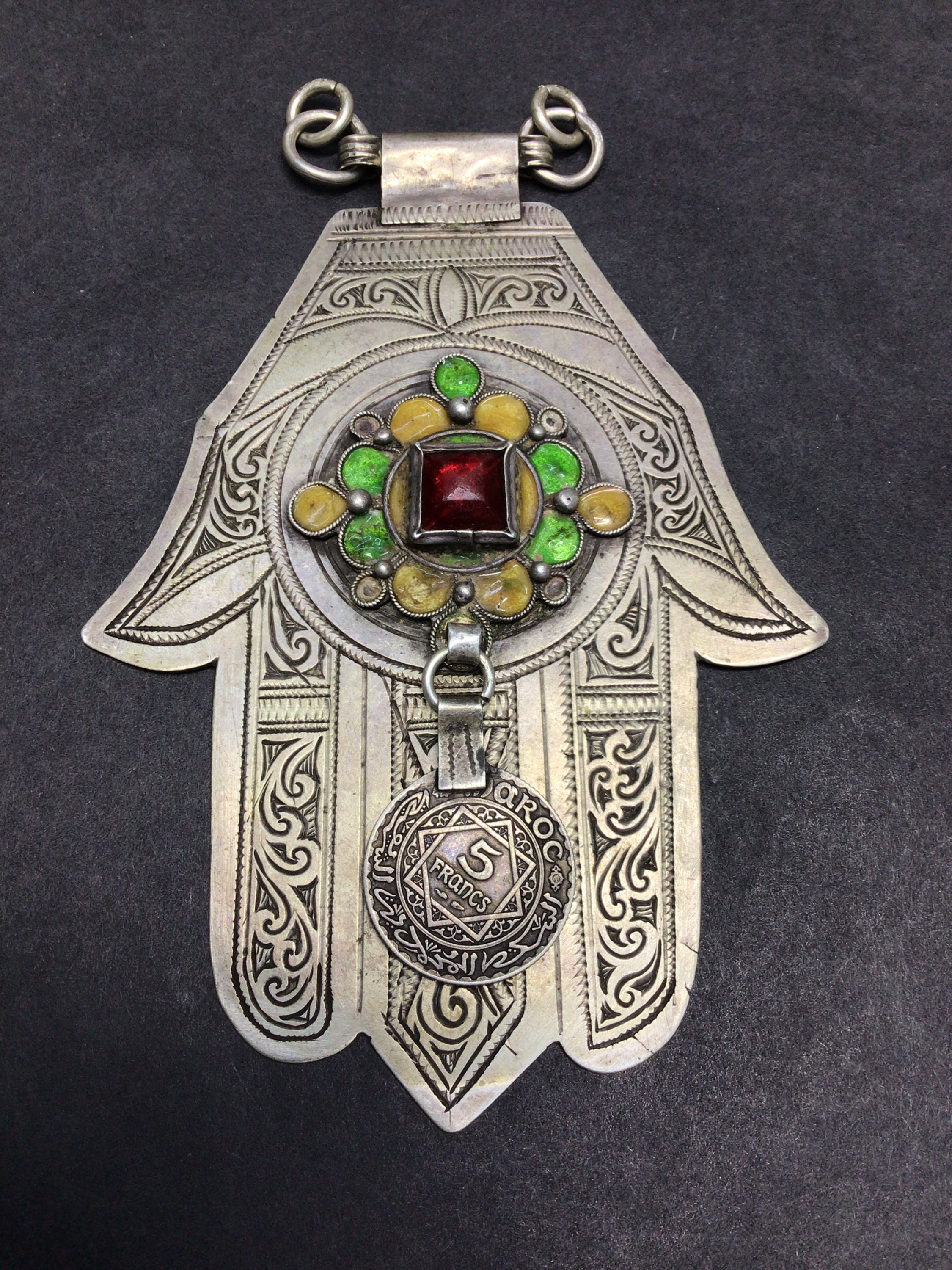 Vintage Berber silver Khamsa, handmade by Berber silversmith region Massa southern of Morocco.