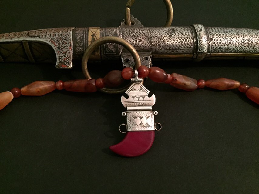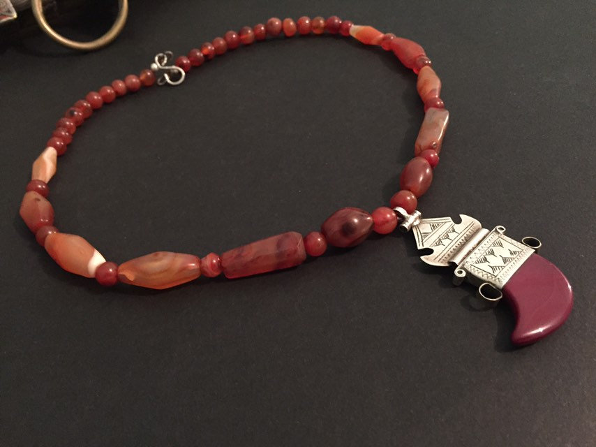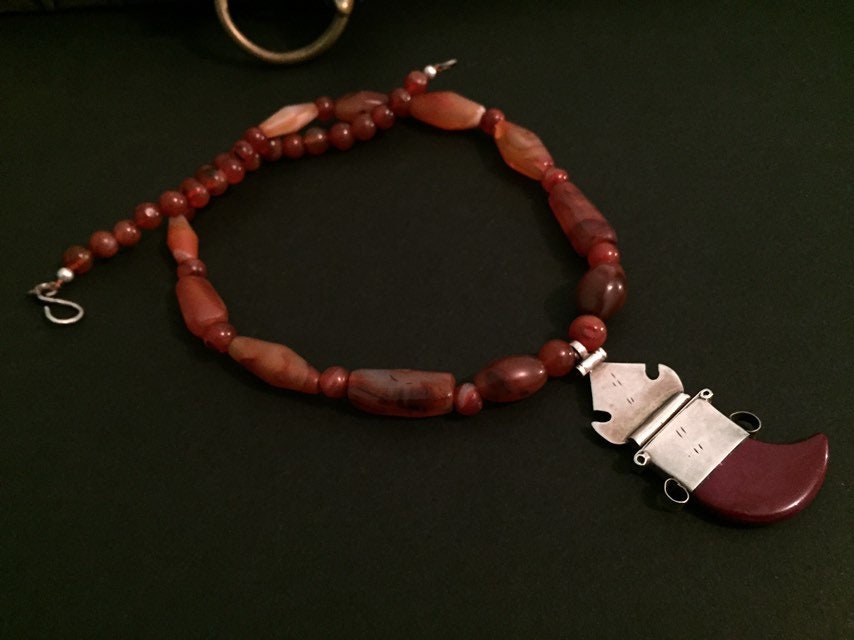Antique African cornaline and vintage Tuareg silver pendant with cornaline stone.