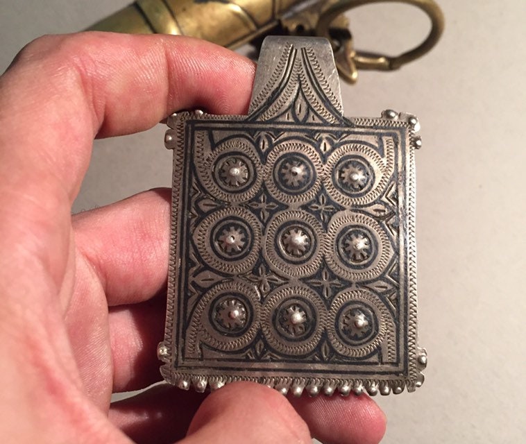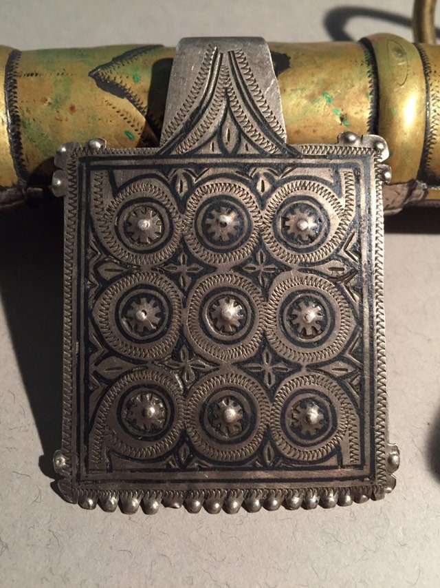 Antique berber silver and niello pendant region southern of Morocco handmade by Berber silversmith.