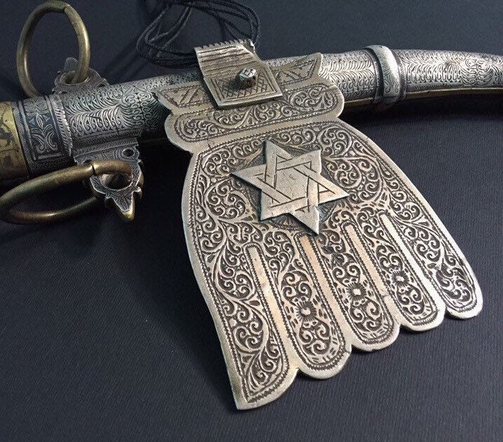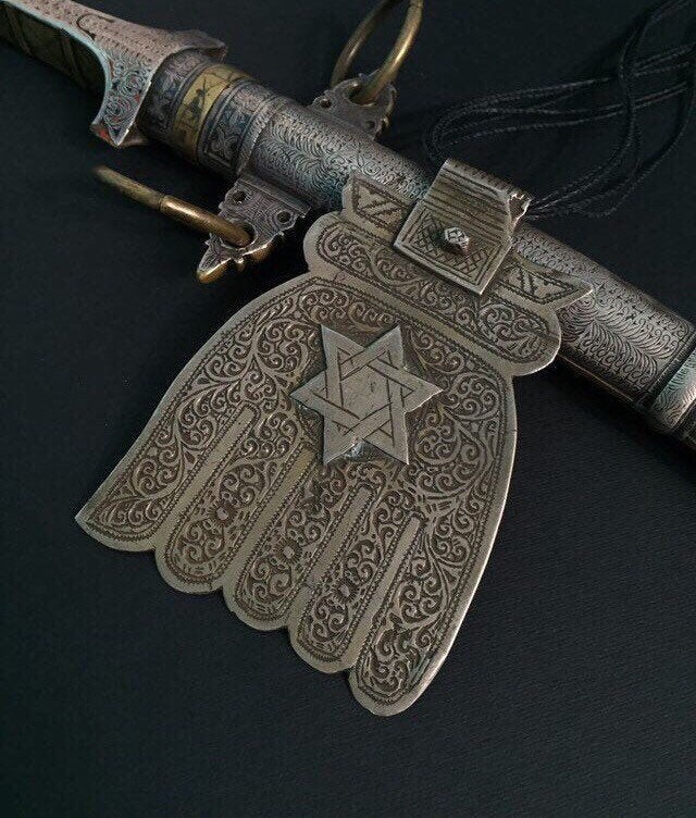 Hamsa,Khamsa,Hand of Miriam,Hand of Fatima is a protective amulet which can ward off evil eye,strong believe in Berber culture.Can be found in North Africa and Middle East,Islamic and Jewish faiths.