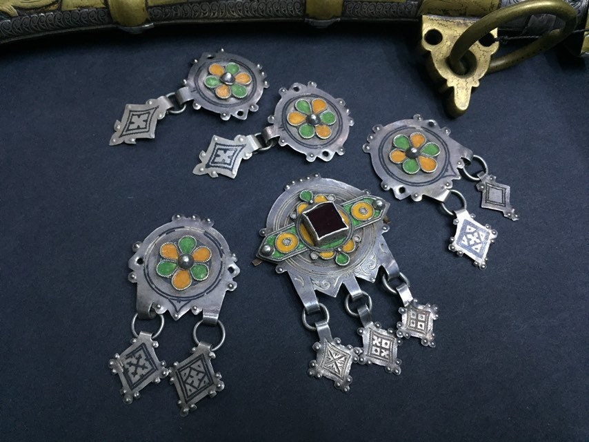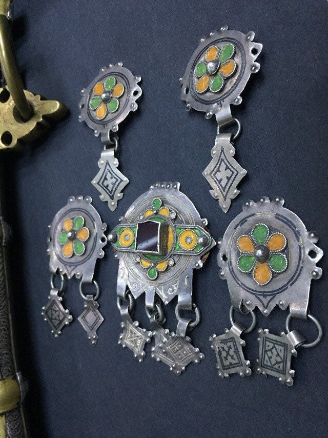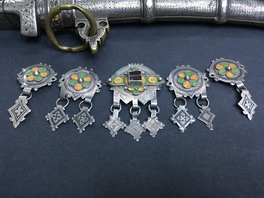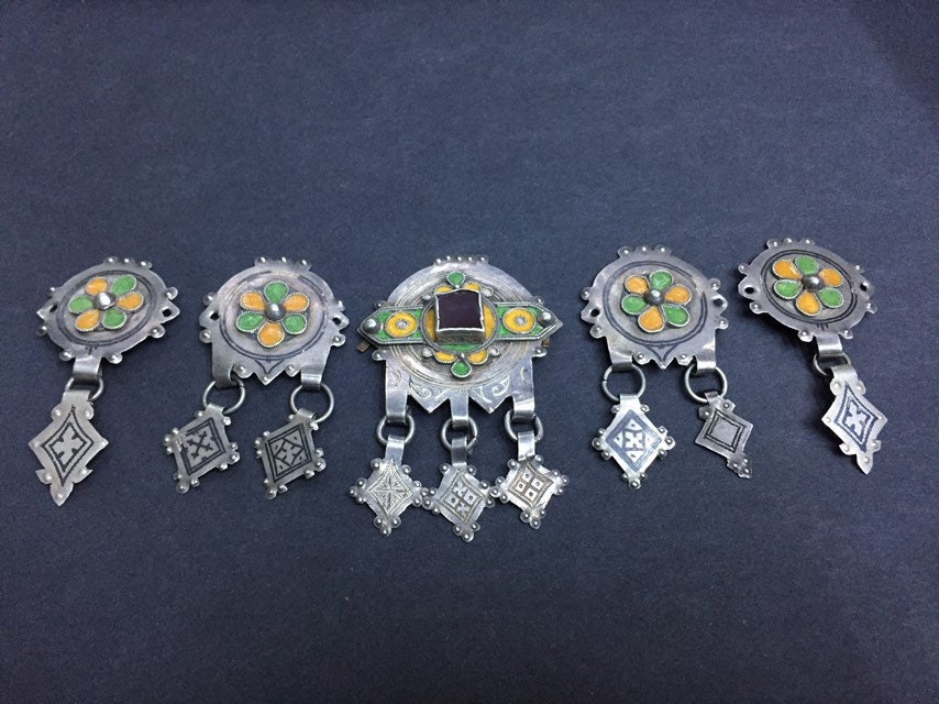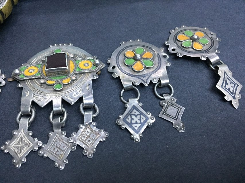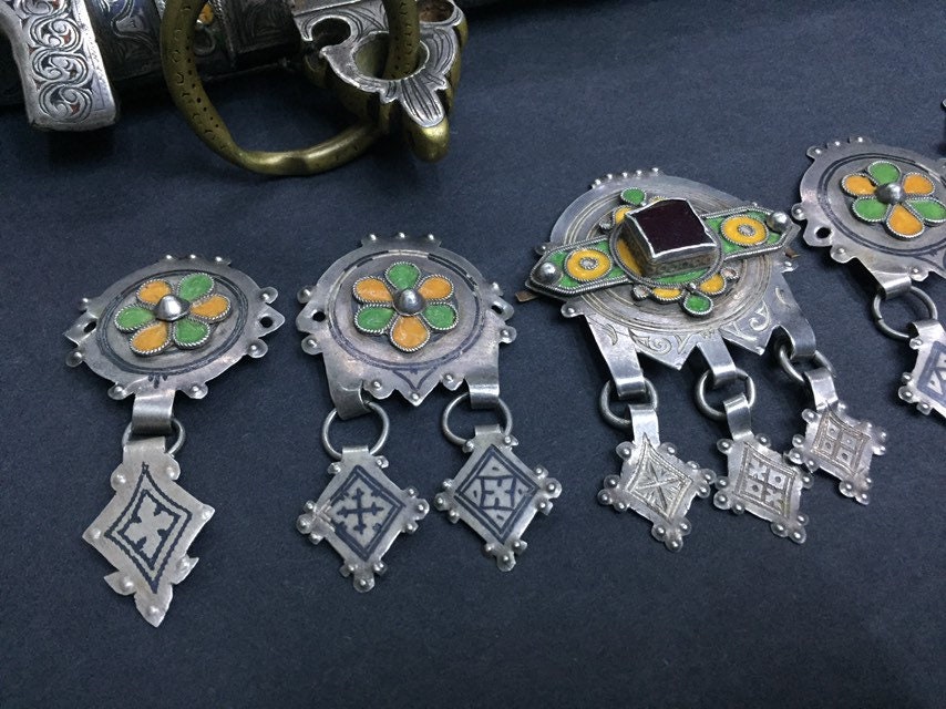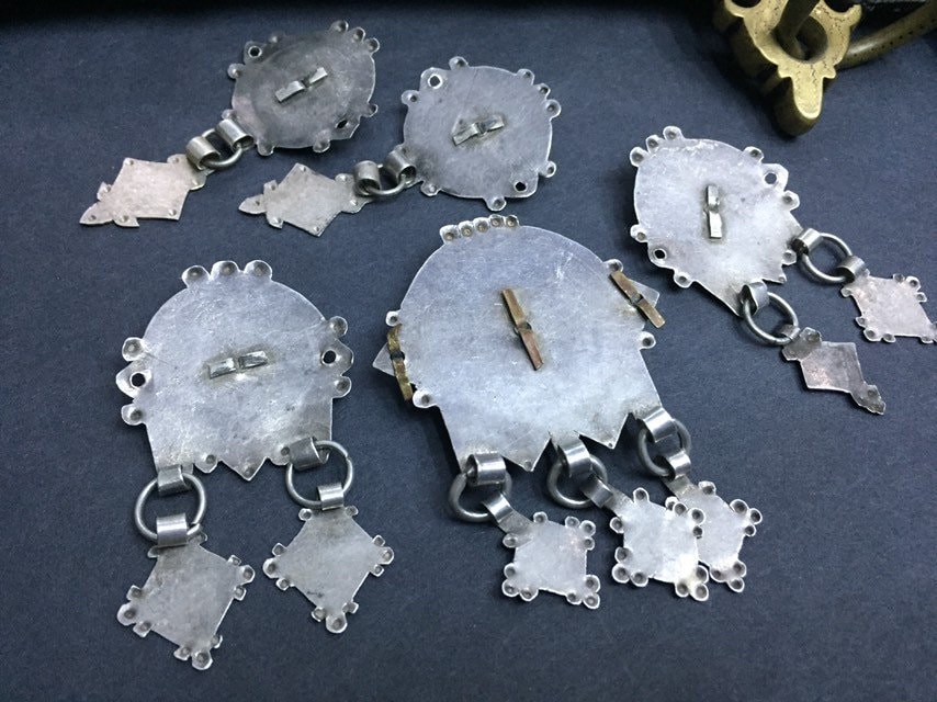 Berber silver and niello headdress pendants region Guelmim Akhsas tribe, southern of Morocco.