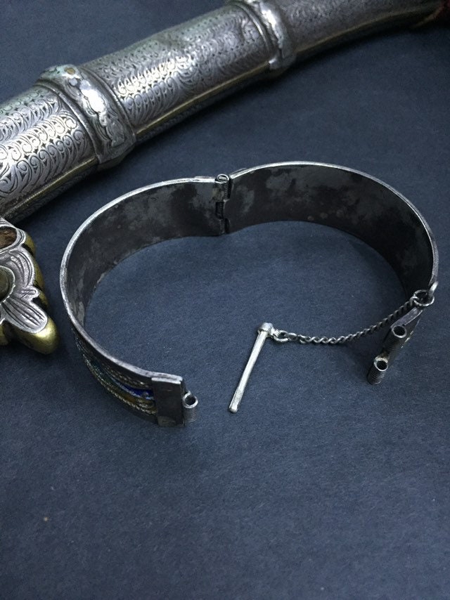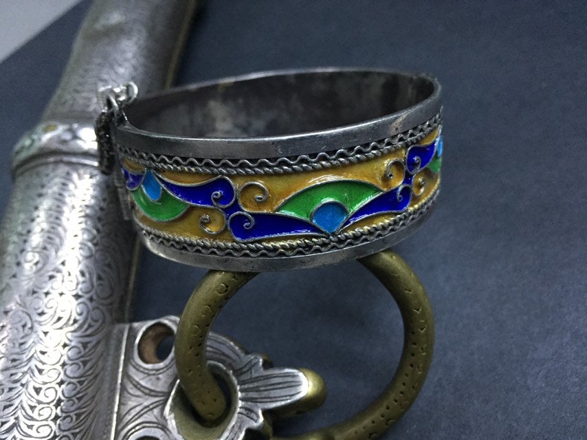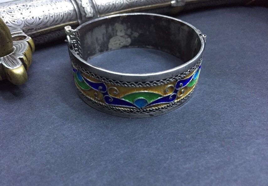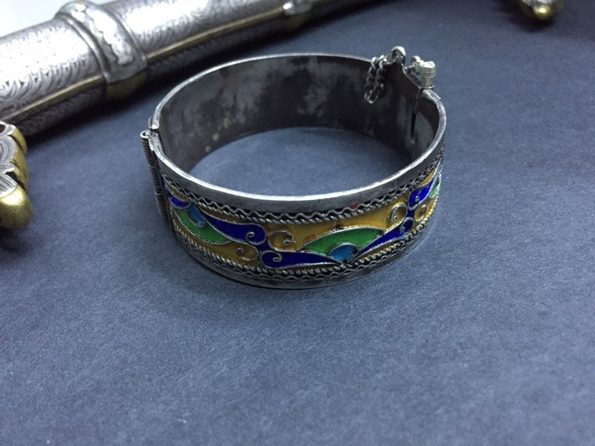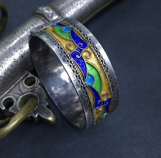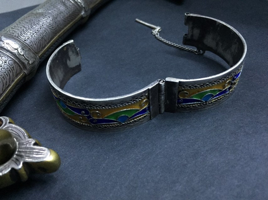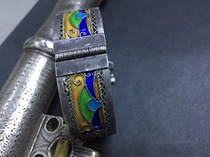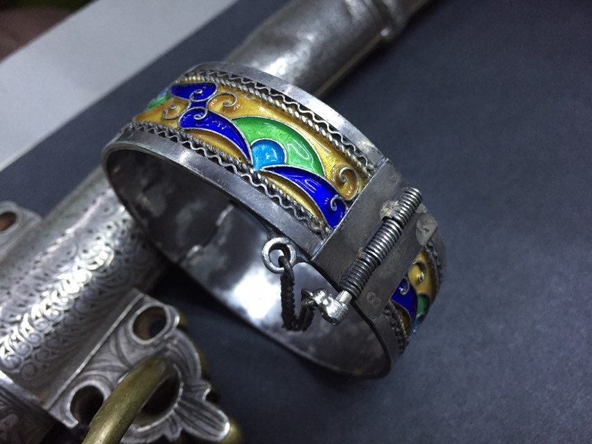 Berber silver enamel bracelet from Tiznit city , southern of Morocco.