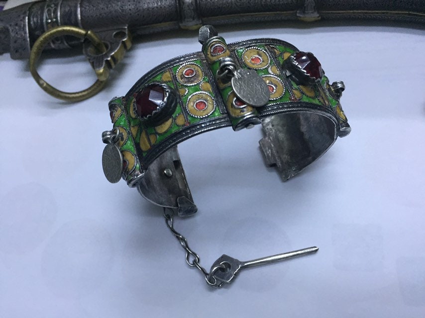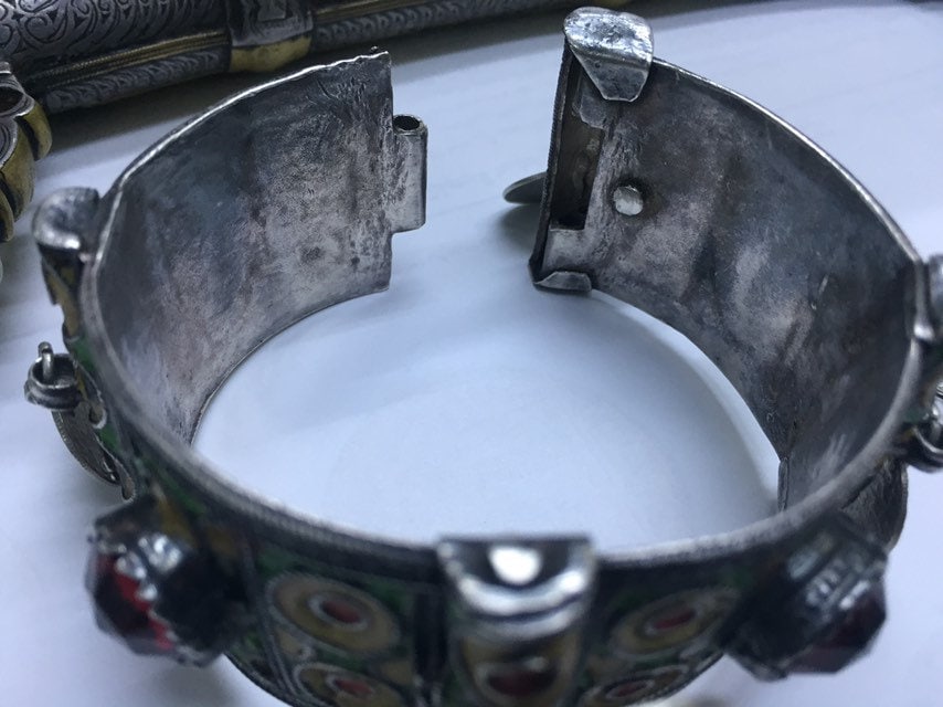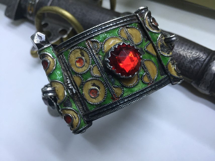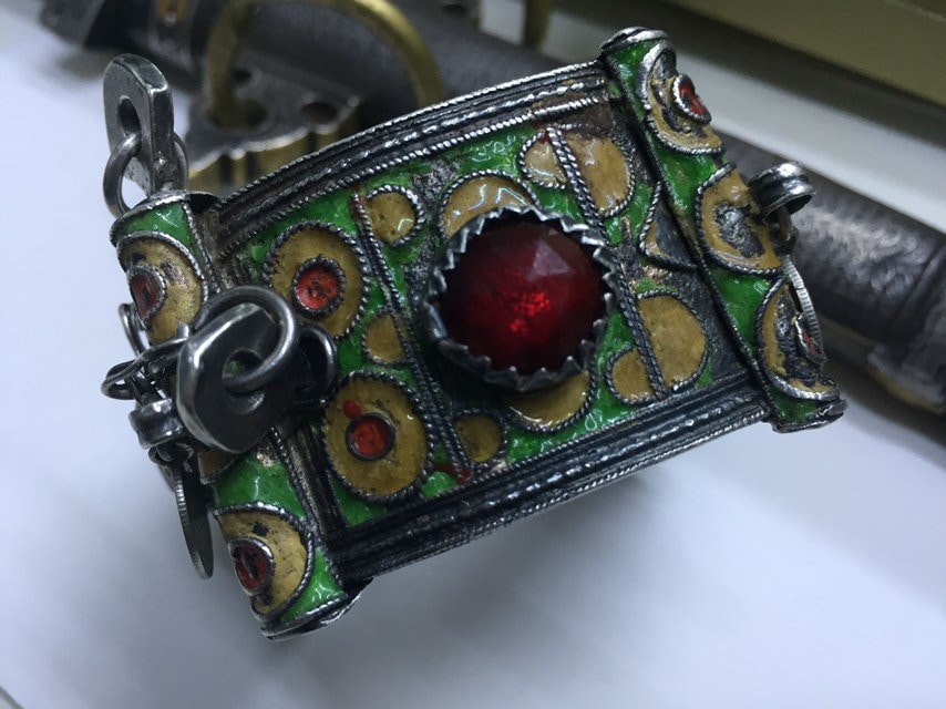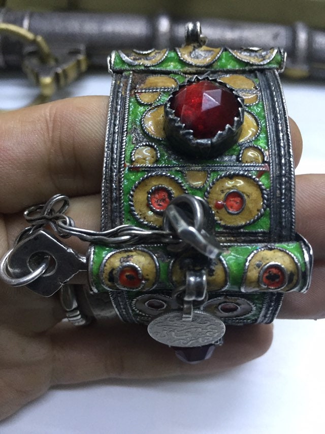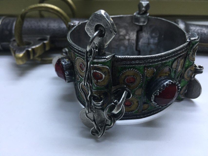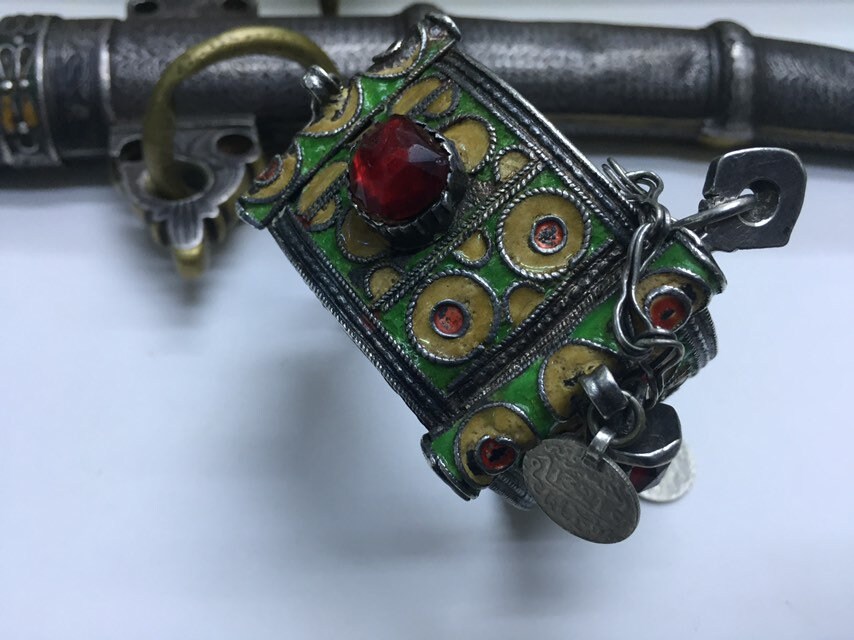 Antique berber silver enamel Nbala region Ida ou Semlal Southern of Morocco.