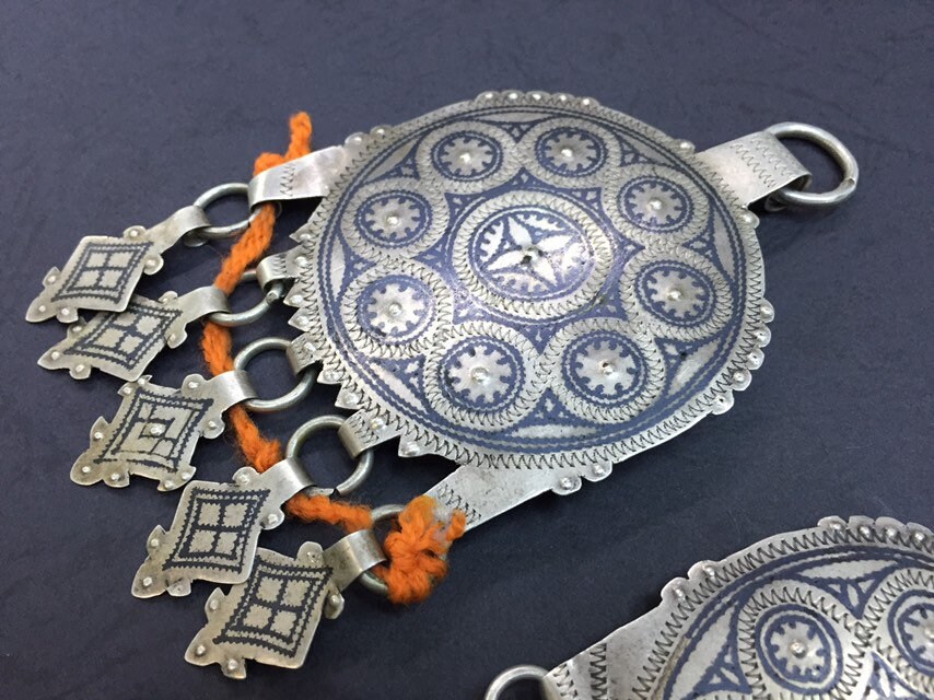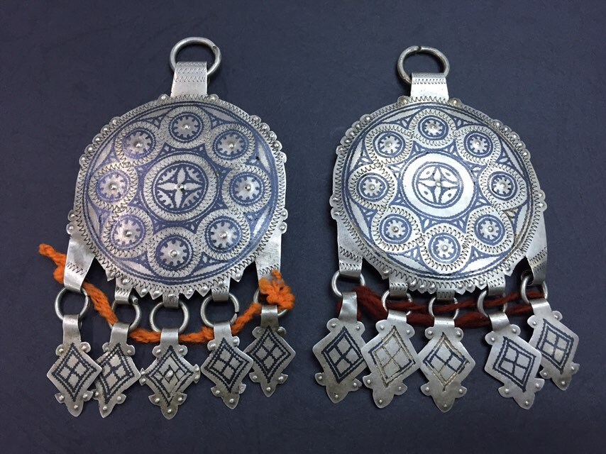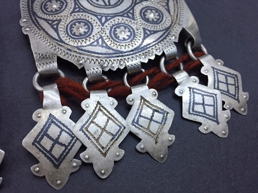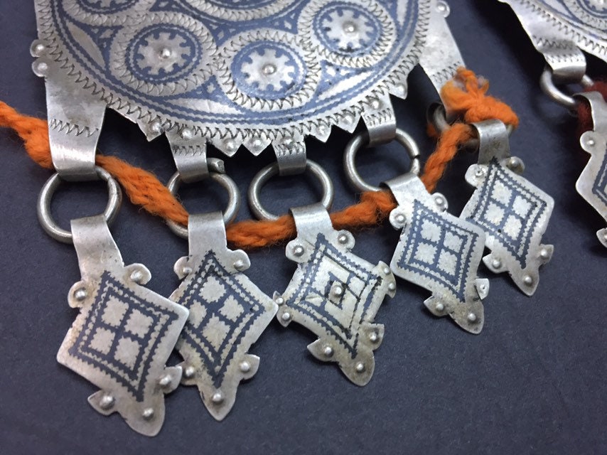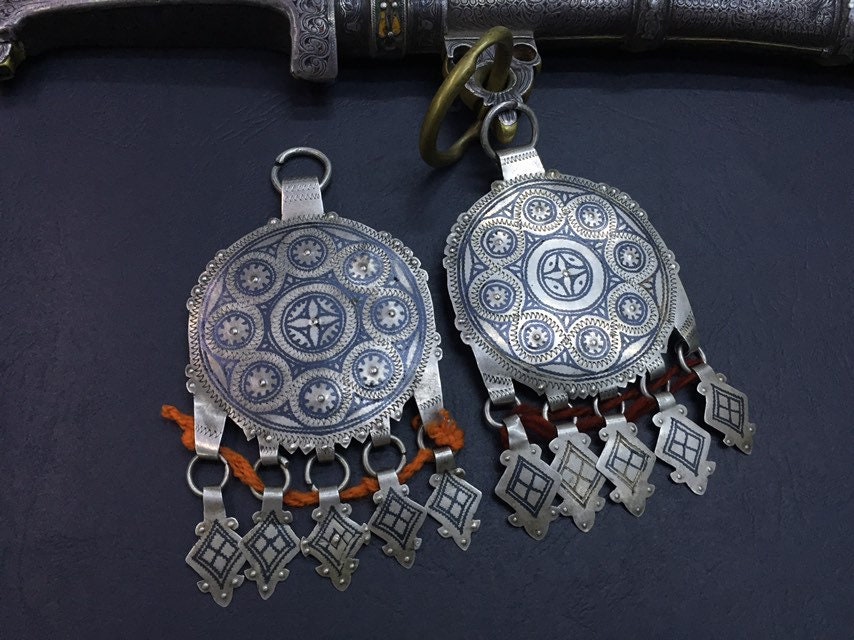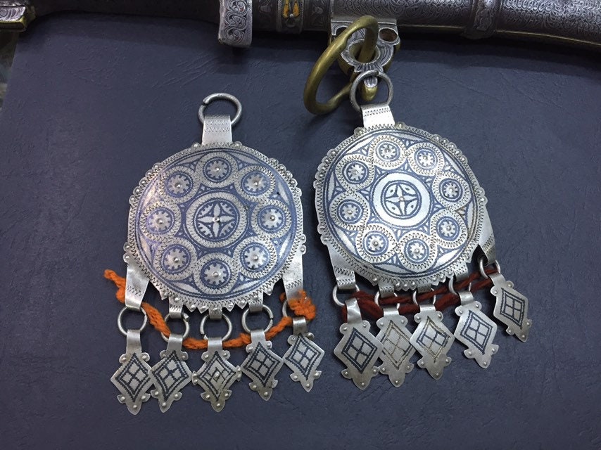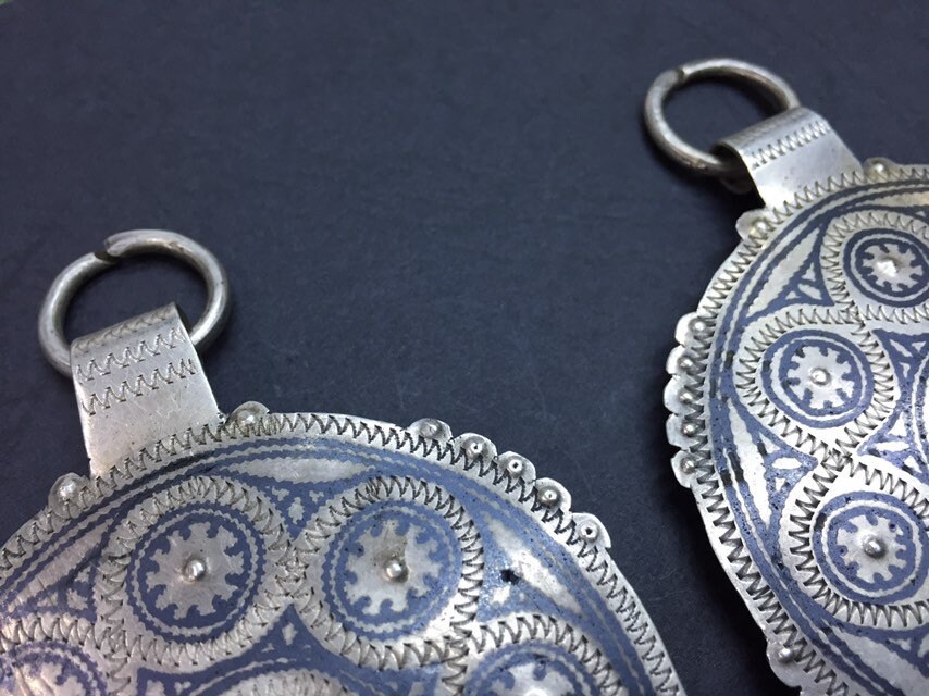 A pair of antique berber niello pendant region AitBaamran southern of Morocco.