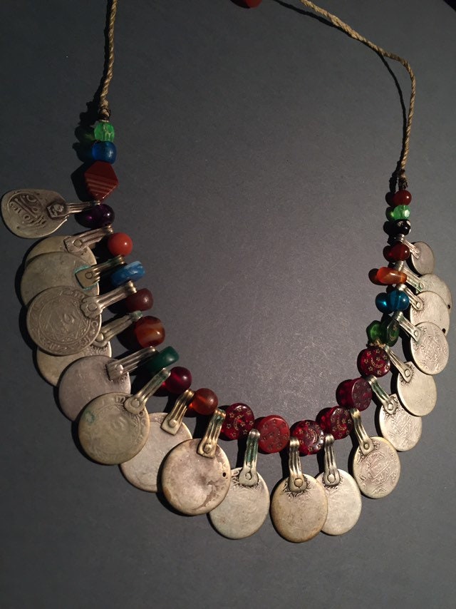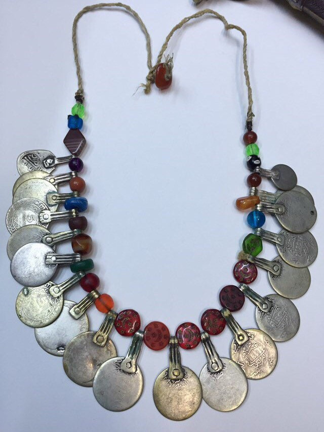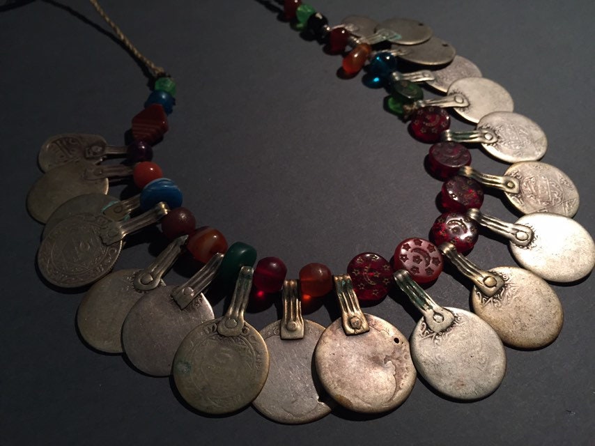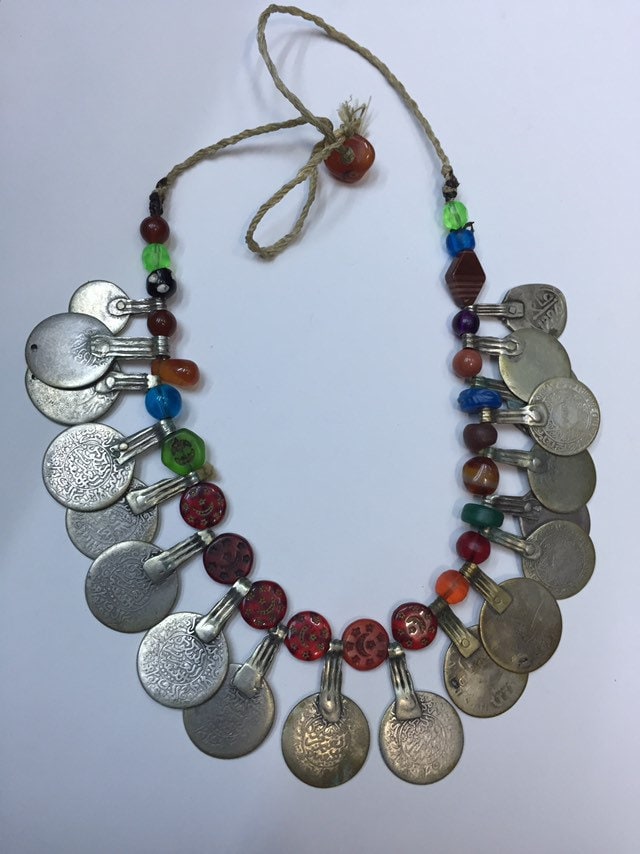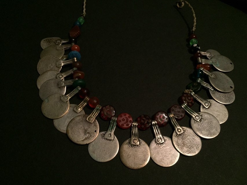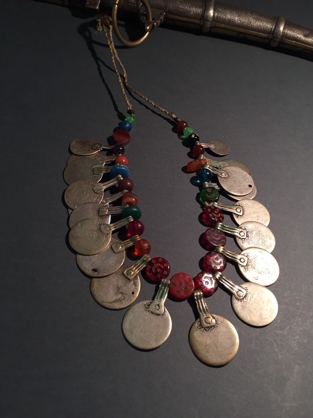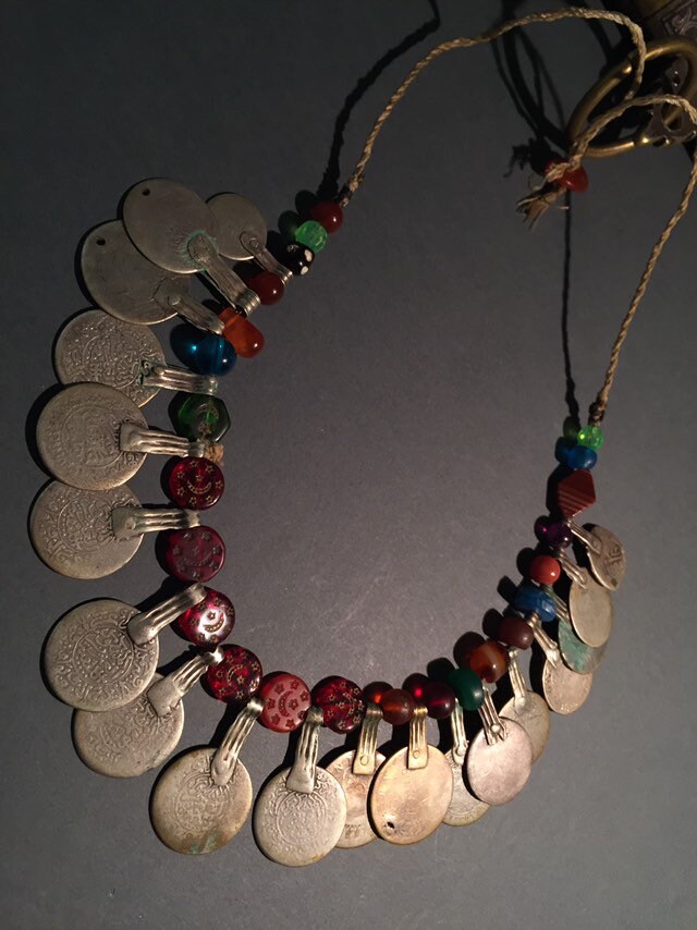 Antique Moroccan Berber silver coin necklace.